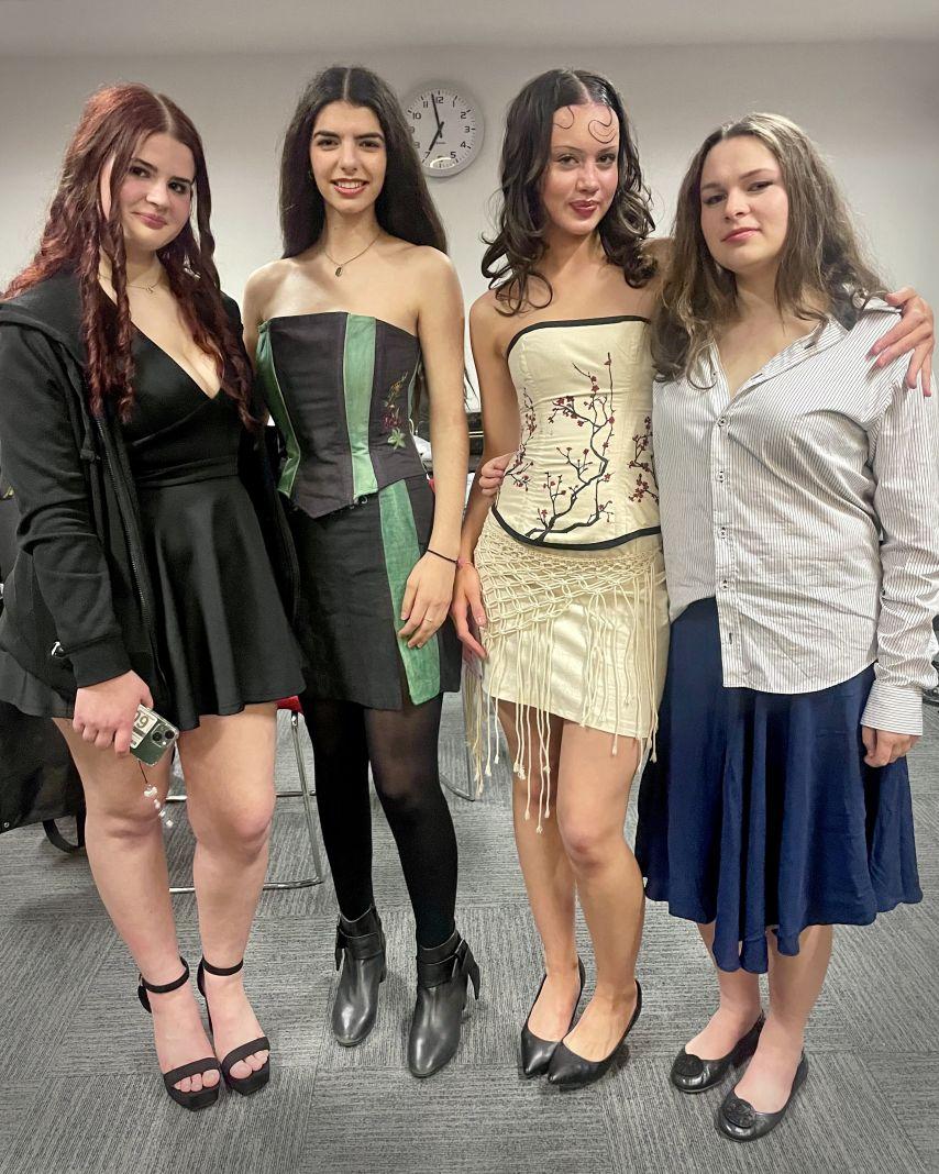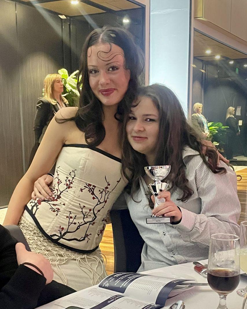 Year 11 designer Siena Melisi showcased exceptional creativity and craftsmanship in her award-winning entry at the Wyndham Fashion Awards Australia, held at the Encore Events Centre in Hoppers Crossing. Entered in the Senior Secondary Calico Section, Siena created a stunning hand-crafted bustier and mini-skirt ensemble that combined traditional garment construction with contemporary artistry.