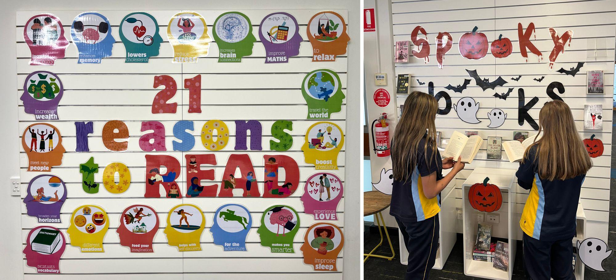Library staff believe in the power of reading and would love to see all students and staff reading for pleasure at least four times a week (reading does include listening to audio books). The library is open before school, after school, at recess and at lunchtime. Students can borrow up to five books at a time. New books are added to the collection every week and can be easily found on the LRC website under New Books. Students are also able to request books for the library to purchase. We have been expanding our three most popular genres: graphic novels, romance and fantasy, plus purchasing new copies of some of the most loved books in the collection. Ebooks and audio books can be downloaded 24/7 from the LRC website. To further encourage reading we’ve put up book displays (Spooky Books to celebrate Halloween and 21 Reasons to Read to encourage reading); set up a table of free pre-loved library books, which students can help themselves to; held reading competitions; and book celebrations for Book Week.