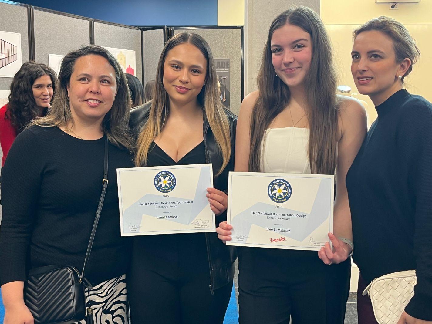 Endeavour Awards are handed out to student recipients who showed exemplary dedication and willingness to take on feedback and to collaborate throughout the year and the creation of their works, and another congratulations on your achievements.