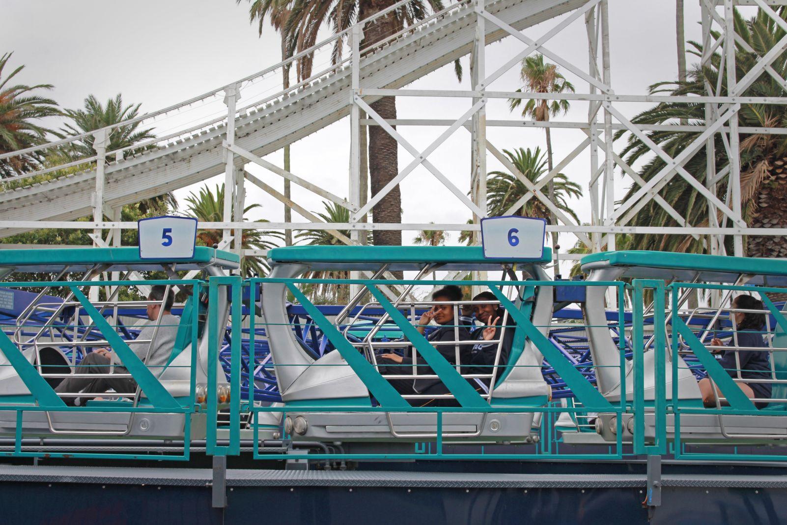Our entrance to Luna Park was delayed, so we began our day by watching an airshow on the beach. When we finally got into Luna Park, our first ride was supposed to be the Twin Dragons, but it was closed! Instead we went on the Enterprise, which allowed us to experience centripetal force and acceleration and the effects of normal force at different parts of a loop. Other rides were practical applications of other aspects of our course, such as the Coney Drop, which demonstrated how gravitational potential energy converts to kinetic energy.